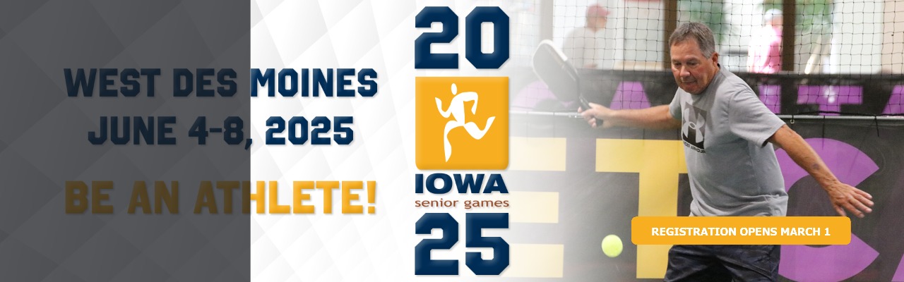 The 39th annual Iowa Senior Games main weekend will be held in West Des Moines June 4-8, 2025. Join nearly 1,000 athletes ages 50 & up from around Iowa and the nation to compete in 30 sports and nearly 100 events! CLICK HERE for more information.